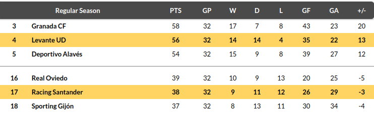 Racing Santander vs Levante Prediction: Standing