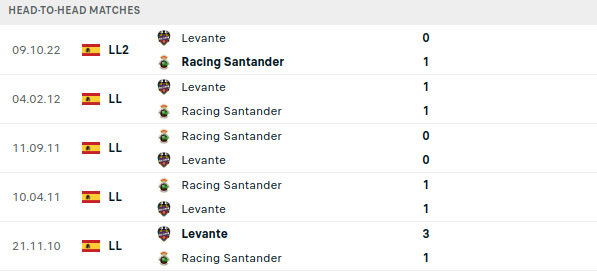 - Santander has remained unbeaten against Levante in their last four league matches (W1 D3 L0), and Levante has not won a league game against Santander since November 2010.