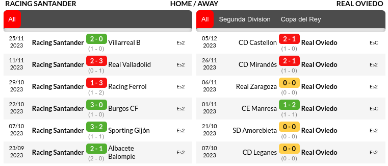 In their recent six league matches, Racing Santander has won two, drawn one, and lost three. Real Oviedo, meanwhile, has won three, drawn two, and lost one in their last six outings.