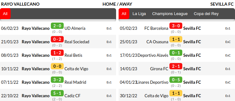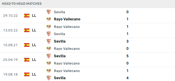 - In their previous Primera División encounter, Vallecano emerged victorious with a 1-0 win against Sevilla at Estadio Ramón Sánchez Pizjuán in October.