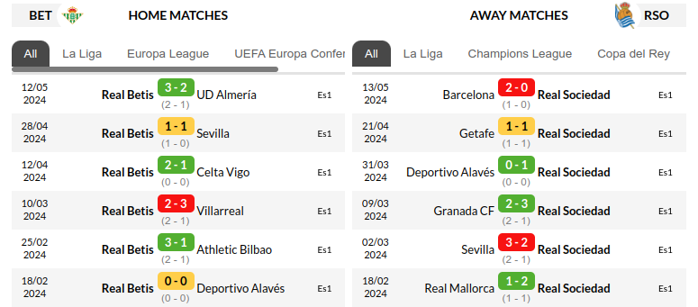 Real Betis vs Real Sociedad Prediction: Standing