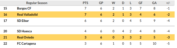Real Oviedo vs Real Valladolid Prediction: Standing