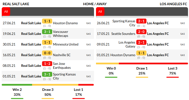 - Real Salt Lake has one win across five MLS matches in a period they have drawn three and lost one.