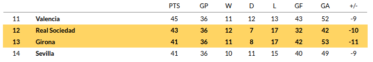 Real Sociedad vs Girona Prediction: Standing