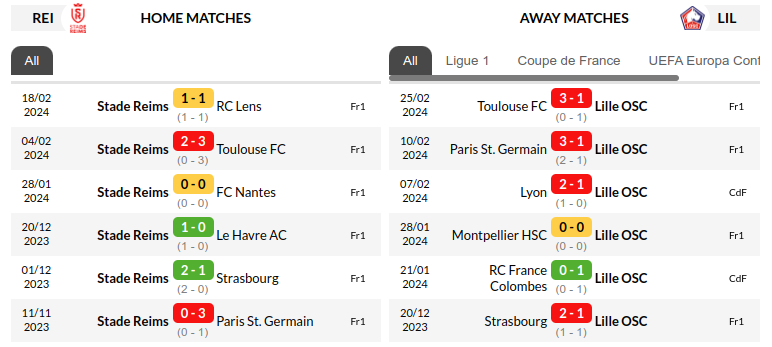 - Historically, Lille haven’t fared well against Reims, losing three out of their last four encounters and the previous meeting at Reims’ home ground.