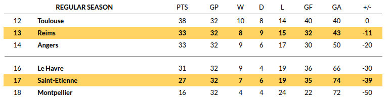 Meanwhile, Saint-Étienne is in dire straits, sitting 17th and four points from safety.