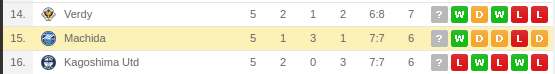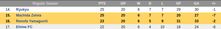 Renofa Yamaguchi Vs Machida Zelvia Prediction: Standing