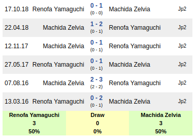 Renofa vs Machida Zelvia: Head to head