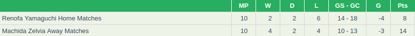 Renofa Yamaguchi Vs Machida Zelvia Prediction: Home/ Away Matches