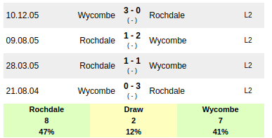 - Wycombe Beat Rochdale 3-0 at home in their last meeting.