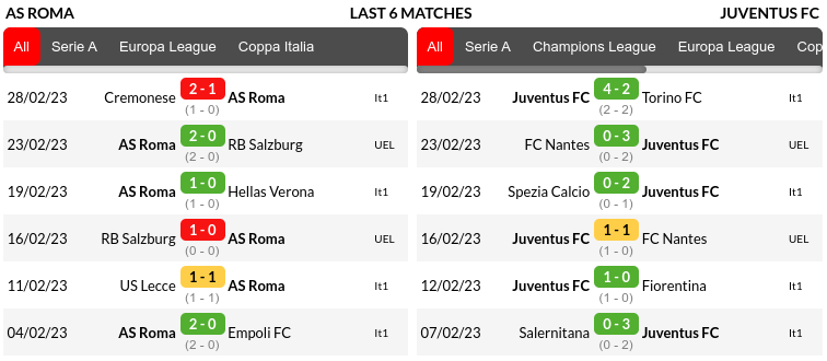 - However, Juventus seem to be gathering momentum and will be looking to continue their hot streak in Rome.
