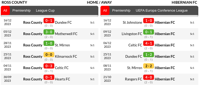 The previous Premiership meeting between the two teams, which took place at Easter Road Stadium in October, concluded in a 2-2 draw. Élie Youan and Jair Tavares scored for Hibs, while Jordan White found the net for Ross County in the 82nd minute. Additionally, Hibs’ Allan Delferrière contributed an own goal.