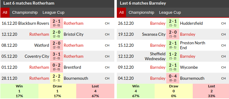 Rotherham Vs Barnsley Predictions: Last Six Matches