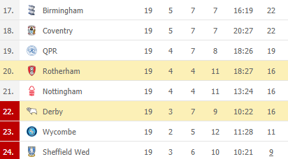 - The Rams have improved lately but still languishing in the bottom three with 19 matches played.