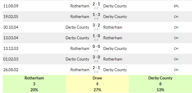 Overall, Derby have the bragging rights winning 8 compared to Rotherham 3.