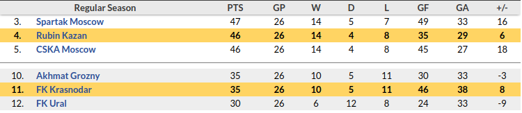 Rubin Kazan vs Krasnodar Prediction: Standing