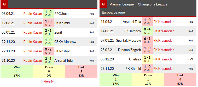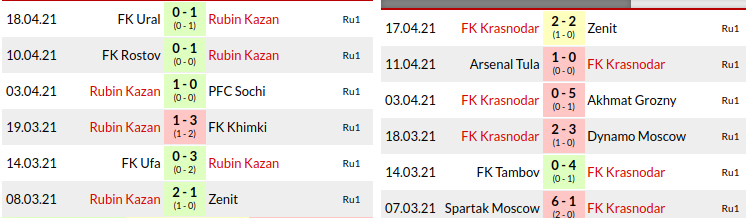 Rubin Kazan vs Krasnodar Prediction: Home/Away Matches