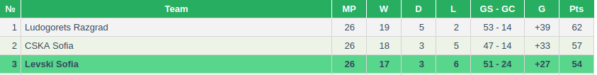 Ruzomberok Vs Levski Sofia Prediction: Standing