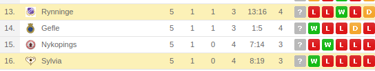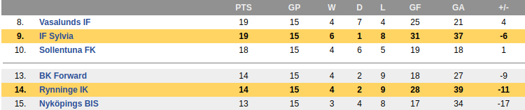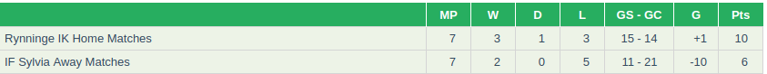 Rynninge IK Vs IF Sylvia Prediction: Standing