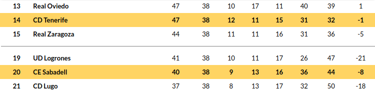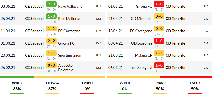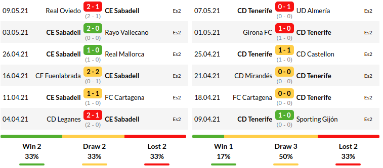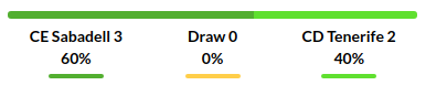 - Sabadell have managed to win three while Tenerife have two to their name.