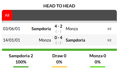 - Sampdoria will be looking for their first win of the season when they welcome Monza who are smarting from beating Juventus.