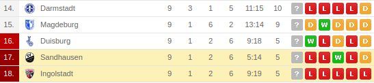 Sandhausen vs Ingolstadt Predictions & H2H: Standing