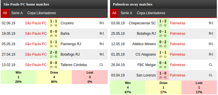 Sao Paulo Vs Palmeiras Prediction: Home/Away Matches