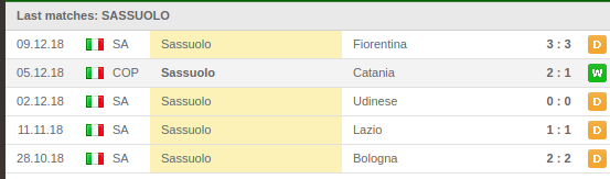 - As hosts, Sassuolo has played eight games of which they have won three, drew four and lost one.