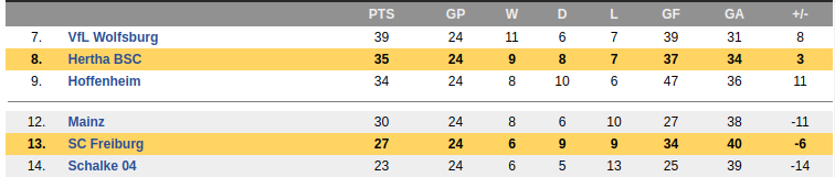SC Freiburg Vs Hertha BSC Prediction: Standing