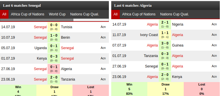 Senegal Vs Algeria Prediction: Home/Away Matches