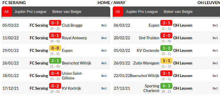 - There have been only three competitive meetings between these two. The first leg saw Seraing win 3-1.