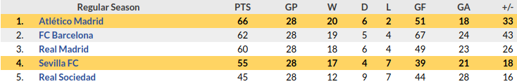 - Sevilla went into the break with a four-match unbeaten run, and are firmly in the Champions League places with a 10 point caution.