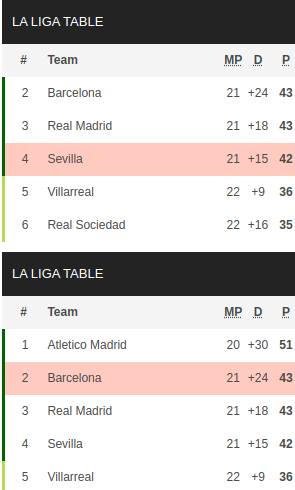 - The hosts are 4th on the table just a point behind Barcelona.