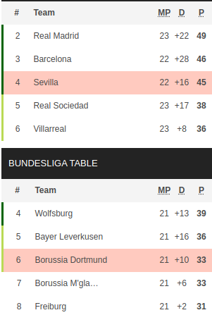 - They are currently 4th in La Liga table nine points behind the top spot, they are 2nd placed in terms of form at home with 8 wins from 11 played.