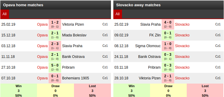 SFC Opava vs Slovacko: Head to head