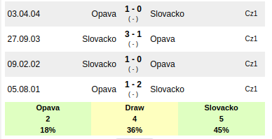 SFC Opava have won one game and Slovacko three games in the last five recent matches.