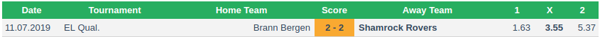 11.07.19 EL Brann Shamrock Rovers 2 : 2