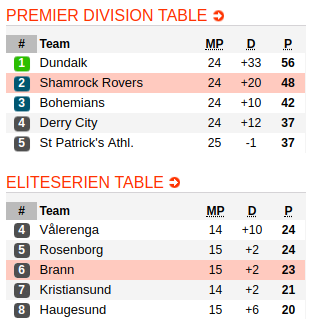 - The home team was held on a goalless draw with Sligo Rovers to remain second on the Ireland Premier league table.