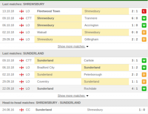 Shrewsbury Vs Sunderland Predictions & H2H: Head to head