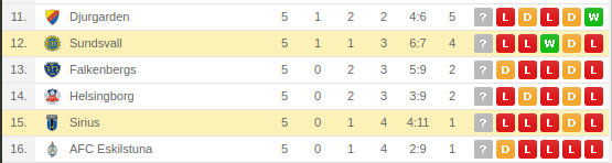 - Sundsvall started the title race strong with a 2-2 draw with Djurgarden and a 3-1 win over Malmo but lost focus as they won one game in the next six.