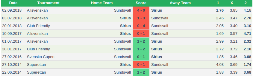 Sirius FK vs GIF Sundsvall: Head to head