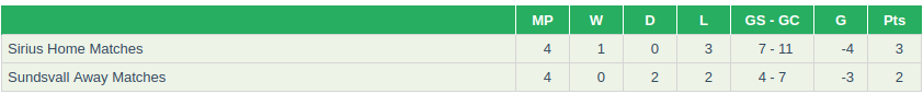 Sirius FK Vs GIF Sundsvall Prediction: Current Form