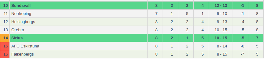 Sirius FK Vs GIF Sundsvall Prediction: Standing