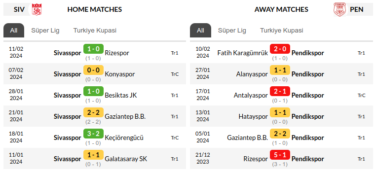 - Sivasspor, riding a four-match unbeaten streak and boasting a strong home record, are overwhelming favorites against Pendikspor, who are missing their key attacker Nayir.