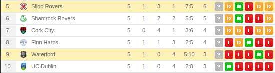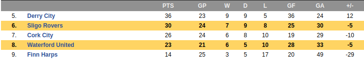 Sligo Rovers Vs Waterford Utd Prediction: Standing
