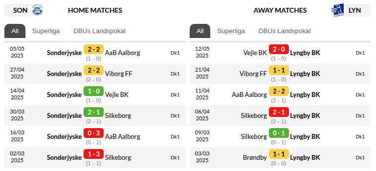 SønderjyskE unbeaten in last 5 meetings (4W, 1D)