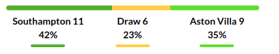 Southampton vs Aston Villa Prediction: Standing