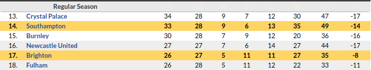 - The saints are not in any immediate danger but will need a turn of events if they are not to be dragged into the relegation battle.