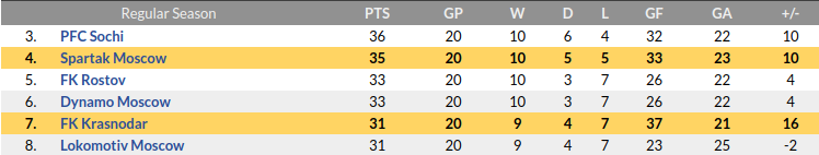 Spartak Moscow vs Krasnodar Prediction: Standing