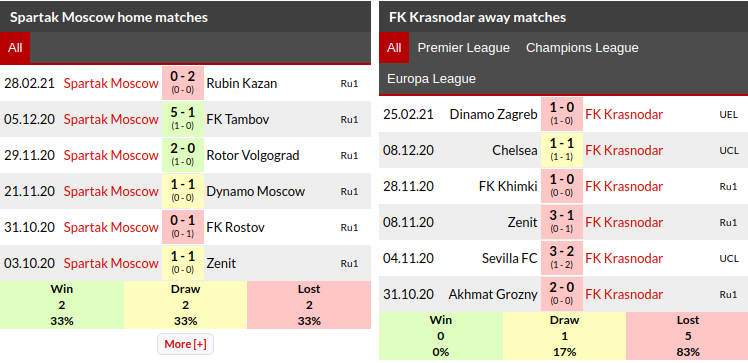 Spartak Moscow vs Krasnodar Prediction: Home/Away Matches